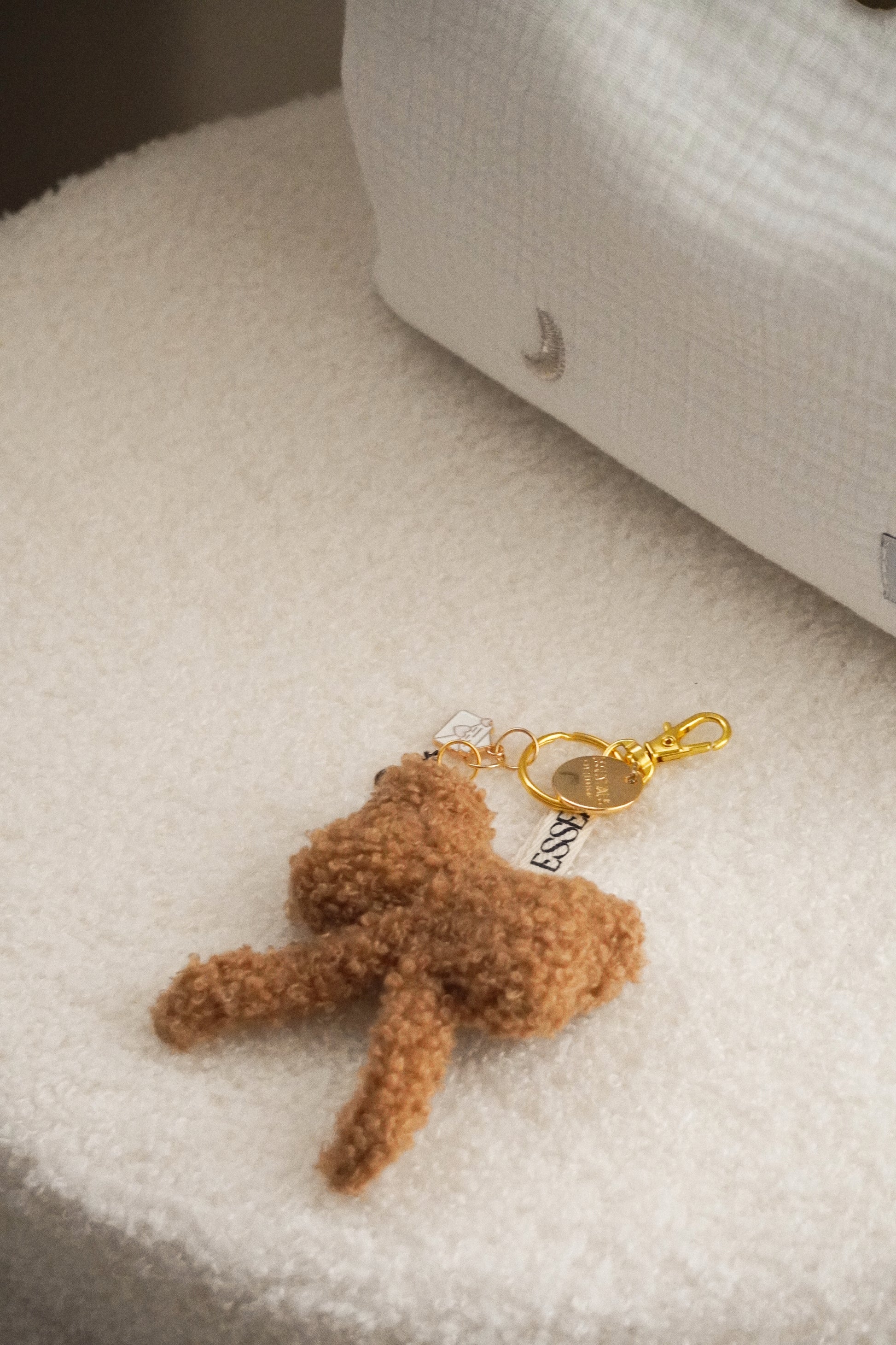 〰️ O porta-chaves vem com a medalha ESSENTIALS, 2 charms aleatórios e um peluche costurado à mão.