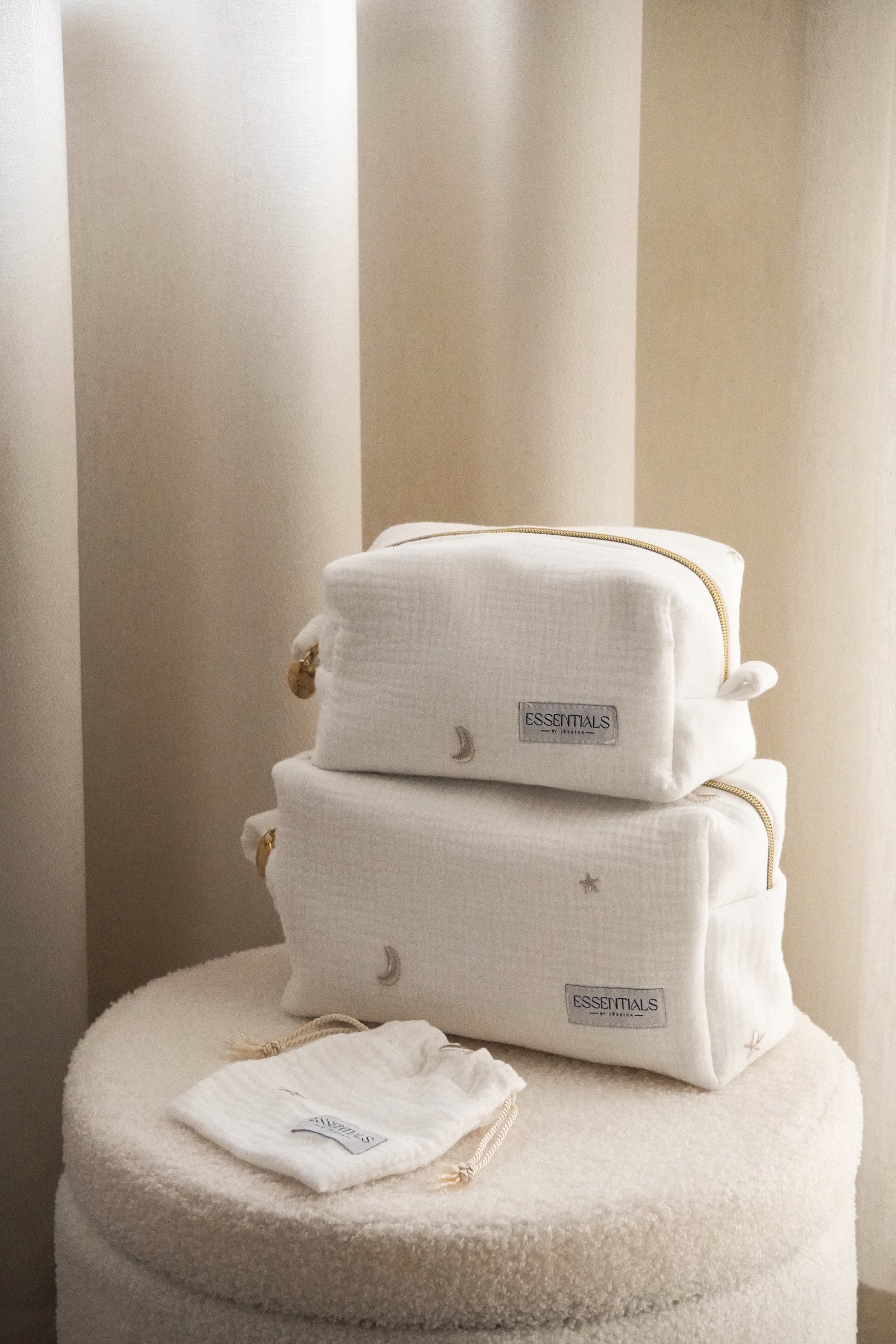 Cada peça é feita com o tempo e o carinho que mereces, porque o verdadeiro luxo está nos detalhes. E o toque mais bonito? Podemos personalizar a beauty bag com a tua inicial e transformar este ESSENTIALS em algo único, feito à tua medida.